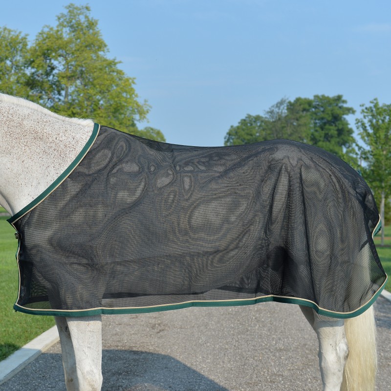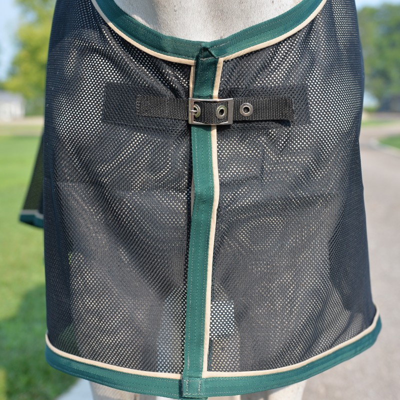 Equine Outfitters Mid-Weight fly scrim is a garment for all occasions. It’s contour fit, featuring a rear dart, creates an elegant look when worn ringside over tack. The 100% polyester fabric will resist wear and tear along with fading. The Mid-Weight fly scrim includes a color coordinating front closure with chrome buckle and tail braid. Pricing includes your choice of nylon trim, single color piing and a one color name or monogram in a single location.